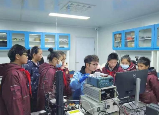 在聆聽完李老師勵志的求學故事后,青少年志愿者們跟著老師的步伐,參觀了李炳祥老師工作室。液晶研究的科學器材和成果讓孩子們大開眼界,同時也讓他們對于平時只能在書本上接觸的前沿科學知識和科學家有了更深刻的認識。