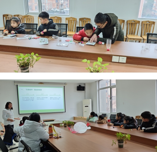 活動(dòng)開(kāi)始,社工通過(guò)PPT向孩子們介紹了從無(wú)廢城市走向無(wú)廢社會(huì)的提出背景和重大意義。“無(wú)廢校園”是建立在“無(wú)廢城市”概念基礎(chǔ)上,是一種先進(jìn)的校園理念,通過(guò)師生自覺(jué)踐行資源節(jié)約、環(huán)境友好、簡(jiǎn)約適度、綠色低碳的生態(tài)文明生活行為習(xí)慣,在校園中達(dá)成廢棄物的“可見(jiàn)、可減、可用、可消”,最終實(shí)現(xiàn)整個(gè)校園廢物產(chǎn)生量減少、資源充分利用、安全處置的目標(biāo)。接下來(lái),社工帶領(lǐng)孩子們動(dòng)手利用空的礦泉水瓶制作小吸塵器,利用紙杯制作小臺(tái)燈,積極倡導(dǎo)“無(wú)廢”理念,培養(yǎng)孩子們自覺(jué)投入到“無(wú)廢學(xué)校”建設(shè)的宣傳和實(shí)踐中去。