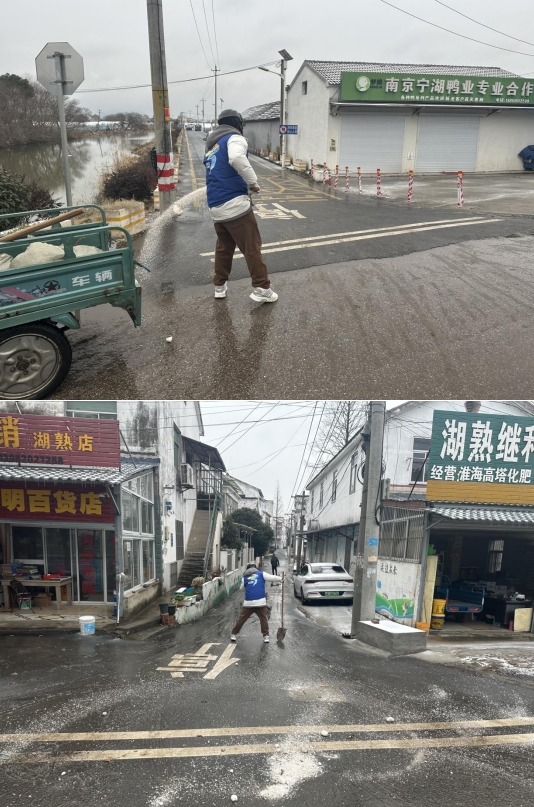 近日,南京市迎來龍年第一場大雪。為確保社區(qū)居民的出行安全,減少因路面結(jié)冰而引發(fā)的安全隱患,南京市江寧區(qū)湖熟街道河南社區(qū)008號網(wǎng)格員們迅速行動,分別在笪家橋、薛家莊以及前后石交接路口進行撒鹽除冰工作。