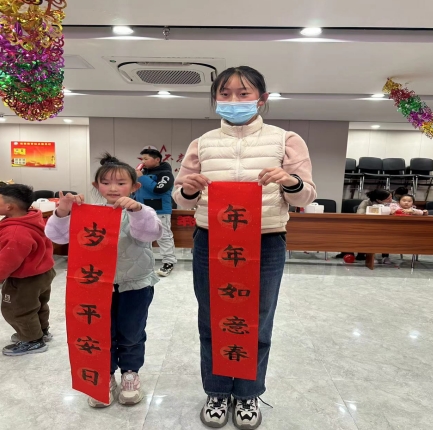 為了弘揚中華民族傳統(tǒng)文化,營造社區(qū)新年氛圍,豐富社區(qū)青少年的寒假生活,2024年2月8日南京市江寧區(qū)秣陵街道火炬村志愿者組織轄區(qū)內(nèi)未成年人開展寫春聯(lián)、送春聯(lián)活動。活動中,二位書法老師手把手教小朋友調(diào)墨汁、寫書法,壓紙、沾墨、起筆……不少零基礎(chǔ)的孩子通過現(xiàn)場學(xué)習(xí)也能很快上手,他們把純真的心意融入到一幅幅喜慶的對聯(lián)中,一筆一畫書寫美好祝愿。
