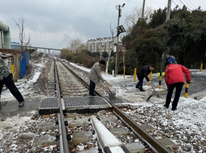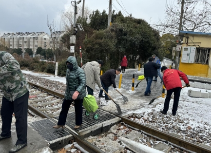 石埠橋村社區(qū):掃除路面積雪 確保安全