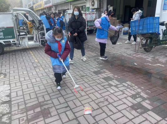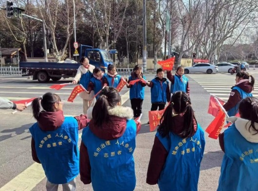 活動當天,少先隊員一早便到達了集合地點,在社區(qū)工作人員和志愿者的引導下兵分兩路,一隊帶著毛巾、水桶、拖把等清潔用具走進社區(qū)居民樓,化身“清潔小達人”,圍繞小區(qū)開展環(huán)境衛(wèi)生大掃除;另一隊少先隊員則出現(xiàn)在社區(qū)交通路口,和交警叔叔一起,參與交通秩序維護,成為“文明交通代言人”。早春的清晨寒意猶在,可抵不住少先隊員們參與活動的熱情,無論被分配在哪個崗位,他們個個精神抖擻,積極勞動,充分發(fā)揚了不怕臟、不怕累、不怕辛苦的奉獻和志愿精神。