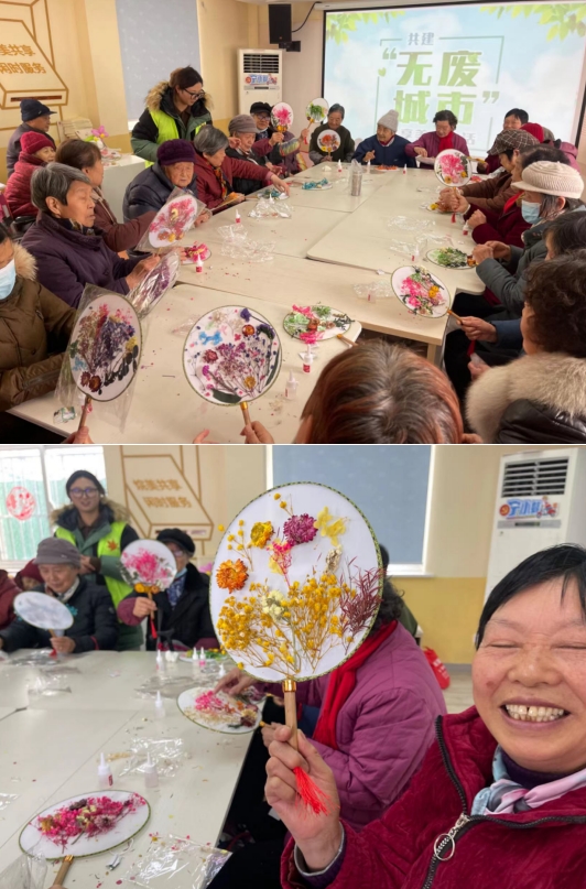 在活動中,社區(qū)以《“無廢”讓生活更美好》為主題,結合實際生活,深入淺出地闡述了無廢城市的概念以及建設的必要性和重要性。讓居民認識到,“無廢城市”并非不產生固體廢物,而是以創(chuàng)新、協(xié)調、綠色、開放、共享的新發(fā)展理念為引領,倡導居民從生活中點點滴滴入手,積極踐行“光盤行動”“綠色出行”“綠色建筑”“再生資源回收利用”“減塑禁塑”等綠色環(huán)保低碳生活方式。同時,工作人員通過圖文并茂的分享讓在場的居民對無廢城市理念有了更深入的了解。宣講之后社區(qū)工作人員還組織居民朋友們現(xiàn)場利用廢舊的枯木樹葉,廢報紙、木頭等材料制作了團扇,讓廢物再利用讓,環(huán)保理念深入人心。