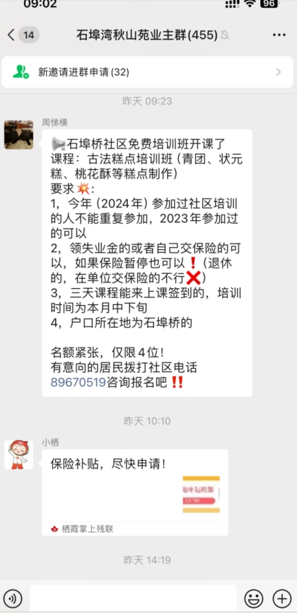 石埠橋村社區(qū):掌上云平臺發(fā)布培訓班通知,居民踴躍報名參與