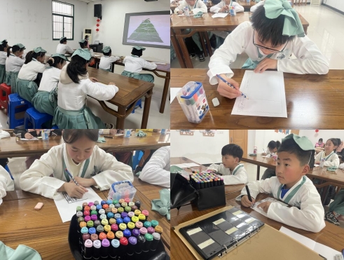 今天的互動環(huán)節(jié)首先是安排孩子們相互分享自己喜歡的唐詩,其次開展《猜詩名》、《詩詞接龍》等游戲,最后讓大家用繪畫的形式將自己喜歡的唐詩,在畫作的背景中巧妙地融入文字、面值、邊框裝飾等郵票特有元素。只見孩子們?nèi)橥度氲絼?chuàng)作之中......不一會兒,一張張既有美感而又富含創(chuàng)意的“郵票”,展現(xiàn)了孩子們對祖國和未來的美好期待和祝福。