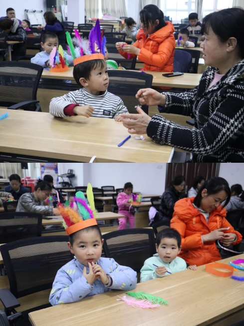 活動(dòng)伊始,老師帶領(lǐng)孩子們進(jìn)行了一系列有趣的熱身活動(dòng),讓小朋友們?cè)谳p松愉快的氛圍中迎來(lái)了故事時(shí)光。本次繪本《百鳥(niǎo)羽衣》以少數(shù)民族苗族為故事背景,質(zhì)樸有趣,不僅展示了苗族文化的特點(diǎn),還充滿(mǎn)了熱愛(ài)生活并且緊緊擁抱生活的精神。文中的阿壯質(zhì)樸、善良,阿彩聰慧、勤勞,而皇帝貪婪、虛偽,老師在閱讀過(guò)程中引導(dǎo)孩子們?cè)u(píng)判并說(shuō)一說(shuō)自己的優(yōu)點(diǎn)和缺點(diǎn),以及如果改正或者克服自己的缺點(diǎn),幫助孩子們形成正確的價(jià)值觀。故事結(jié)束,在老師的指導(dǎo)下,孩子們發(fā)揮創(chuàng)造力和想象力,用羽毛設(shè)計(jì)了自己的帽子,感受中國(guó)的傳統(tǒng)美。
