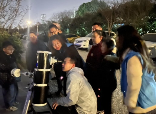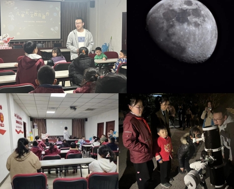 觀測月亮環(huán)節(jié)更是讓孩子們興奮不已。陳政首先向孩子們介紹了天文望遠鏡的使用方法和安全注意事項,確保每位小朋友都能在安全的前提下進行觀測。隨后,孩子們分成三個小隊,依次下樓,通過望遠鏡親眼觀察到了月亮的真實面貌。他們圍在一起,驚嘆于月球的神奇與美麗,對宇宙有了更加清晰直觀的認識。