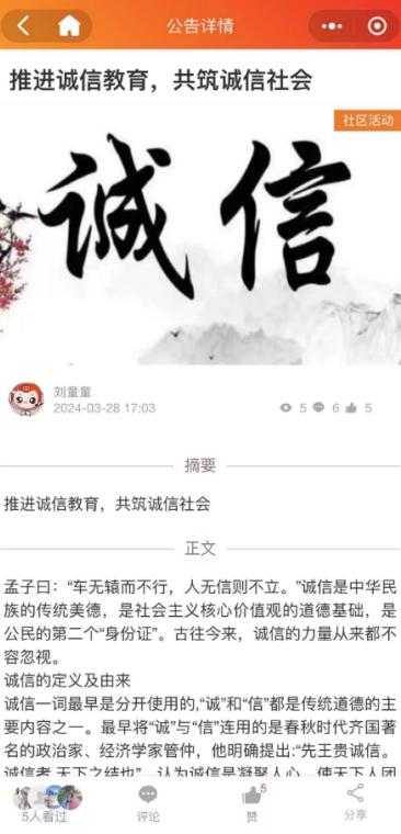 掌上云社區(qū):推進誠信教育 共筑誠信社會