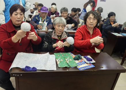 隨后,職工志愿者帶領(lǐng)大家一起動手制作了艾草錘?!鞍蒎N的工藝比較講究,將干燥的艾草填充進布袋中,并用繩子緊緊系好,制作出艾草包。接著,他們用彩色布料巧妙地包裹在艾草包外,裝飾成各種可愛的圖案,如小花、心形等,使艾草錘更加精致美觀......”跟隨志愿者的講解和示范,老年居民們通力合作,有條不紊地進行著每一個步驟。大家積極動手,捆綁、編織、縫合,充滿了歡聲笑語。每個人都在認真投入,努力將手中的艾草變成一件件美麗實用的艾草錘。在制作過程中,大家相互交流,分享各自的制作經(jīng)驗與技巧,現(xiàn)場氣氛溫馨而融洽。
