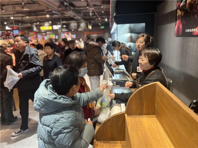 服務(wù)的溫度滲透于無(wú)數(shù)細(xì)節(jié)。門店增設(shè)顧客休息區(qū),配備身高測(cè)量?jī)x、血壓儀、洗手池、直飲水、微波爐及免費(fèi)使用1小時(shí)的充電寶。同時(shí),門店增加深度加工服務(wù):肉禽柜臺(tái)提供切絲、切片、絞肉、剝皮、剔骨等全方位服務(wù);海鮮柜臺(tái)可為高端食材提供清洗、打氧,并提供活魚宰殺等服務(wù)。細(xì)節(jié)方面更顯貼心,調(diào)味貨架旁備有放大鏡方便老年人查看商品配料表;連卷袋處設(shè)置濕手器果切組合按甜度提示食用順序;紡織品區(qū)域放置隔離袋;試鞋區(qū)提供一次性襪套;收銀臺(tái)免費(fèi)提供一次性耗材……這些看似微小的舉措,共同構(gòu)建了安全、安心、便利的購(gòu)物體驗(yàn)。