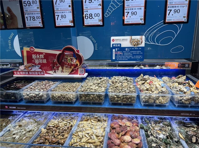在全面提升商品品質(zhì)的同時(shí),門店堅(jiān)定不移地踐行“優(yōu)質(zhì)平價(jià)”的承諾。對(duì)于高頻民生商品,永輝通過(guò)供應(yīng)鏈優(yōu)化確保在同等品質(zhì)下價(jià)格更優(yōu),讓品質(zhì)生活無(wú)需高價(jià)。以江寧寶龍店為例,蔬果區(qū)的霜打白菜售價(jià)0.79元/斤,七寶青0.99元/300g,砂糖橘3.99元/斤,五谷雜糧蛋20枚9.9元,水產(chǎn)區(qū)鮮活淡水鱸魚13.9元/條,鮮活花蛤每斤7.9元。
