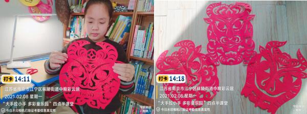 一份簡單的底稿、一張紅紅的宣紙、一支小小的剪刀,小朋友們根據(jù)志愿者所發(fā)放的材料、視頻講解、溫馨提示等內(nèi)容將傳統(tǒng)剪紙藝術(shù)與牛年新春相結(jié)合,完成剪紙作品。隨后,志愿者通過剪紙知識小問答,讓孩子們了解到剪紙以紙張、金銀箔、樹葉、皮革等為載體,運用剪、刻、撕的手法進行創(chuàng)作。孩子們逐一分享其剪紙成品與感受。“一些看似簡單的東西需要付出很多的耐心與細心。”正如日常的洗手、戴口罩一樣,看似細微簡單,也需要我們?nèi)谌氲饺粘I钪?,繼續(xù)堅持,才能有效防止疫情的擴散。“最大的心得就是可以靜心,最近心情浮躁,剪紙的時候,讓心情得以放松。”一位小朋友笑著說道。“宅”生活,不免讓人感覺到煩躁,但也需要在乏味的生活中尋找樂趣。