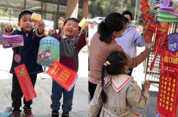 元宵節(jié)一定要掛上彩燈才顯得熱鬧,一盞盞五彩斑斕的花燈串聯(lián)起來,懸掛在小區(qū)西門入口處,映照出濃郁的喜慶。彩燈下各種燈謎高低懸掛著,孩子們和家長穿梭在彩燈下,觀花燈、猜燈謎,迫不及待地準(zhǔn)備在猜燈謎環(huán)節(jié)中大顯身手。“我猜出來啦,這個答案是元宵吧”、“爸爸,我們快去驗證謎底,看看我猜的對不對”。孩子們有的緊盯著謎面,有的低頭凝思,有的相互交流,大家你一言我一語,相互比賽,看誰猜的對、猜的多,歡聲笑語此起彼伏。猜完燈謎驚喜多,孩子們帶著猜出來的燈謎卡,神采奕奕地去兌換小禮物,臉上洋溢著幸福、自信的笑容。