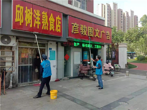 清洗門頭牌匾 扮靚美麗街區(qū)