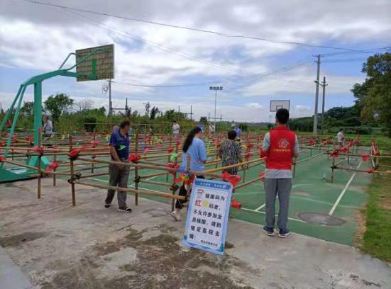 “人員混流降低核酸檢測效率,不僅容易引發(fā)村民間的矛盾,也容易引起人員聚集,造成安全隱患。”淳化街道民主村針對莊上和王居寧監(jiān)測點現(xiàn)有實地情況,連夜緊密鑼鼓對站點旁的籃球場進(jìn)行整合利用,組織工人用鋼管等設(shè)施建設(shè)對籃球場進(jìn)行微改造,形成排隊通道。同時,在地面每個一米貼上警示貼,提醒大家有序、規(guī)范排隊。