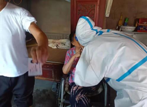 為了幫助村里行動不便的殘疾人士做好核酸檢測采樣工作,對口支援徐慕村的徐州醫(yī)療支援隊主動提出上門為殘疾人士做核酸檢測,在徐慕村工作人員的協(xié)調(diào)下,徐州醫(yī)療支援隊動身前往村民家中。