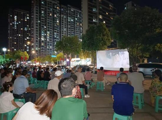 在觀看兩部電影的過渡中,大銀幕還播放了掃黃打非警示錄宣傳小視頻,營造健康向上的文化氛圍。同時,社區(qū)進行了全民閱讀的宣傳,讓居民們掃碼閱讀紅色經(jīng)典,傳承紅色精神。