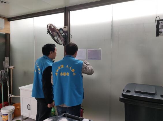 經(jīng)過檢查,小區(qū)垃圾分類環(huán)保屋的建設(shè)比較完善,也張貼有相關(guān)的宣傳海報和垃圾投放時間,小區(qū)志愿者和網(wǎng)格員會在規(guī)定時間內(nèi)進行站崗、對垃圾桶消毒,保障垃圾分類的合理衛(wèi)生。