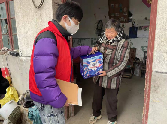 家住和平村的困境兒童收到了來自社區(qū)的新年禮物,孩子的爺爺奶奶拉著工作人員的手連連感謝,感謝這一年來社區(qū)對孩子的幫助。據(jù)了解,其中一名兒童是智力二級殘疾,平時跟著爺爺奶奶居住,家庭條件困難?,F(xiàn)場,志愿者與其親屬親切交談,詳細了解孩子的生活狀況、飲食起居及存在的困難,同時鼓勵他們要積極向上、樂觀生活。溫暖的話語讓走訪家庭深切感受到來自黨和政府的關(guān)懷,同時也使他們更加堅定了對美好生活的信念。