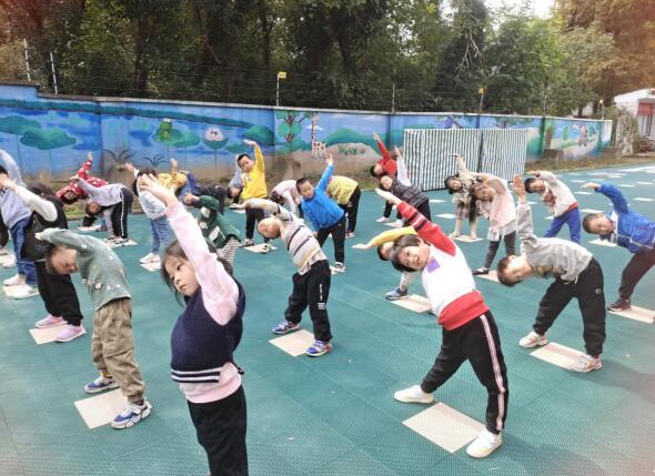 操場(chǎng)上,孩子們?cè)谏鐓^(qū)工作人員和老師的指引下排列成陣,伴隨著陣陣音樂聲,跟著老師的動(dòng)作,時(shí)而伸展運(yùn)動(dòng),時(shí)而擴(kuò)胸運(yùn)動(dòng),時(shí)而踢踢腿、蹦蹦跳跳,通過練習(xí)體操熱身,進(jìn)行全面的體育訓(xùn)練,在快樂運(yùn)動(dòng)的同時(shí),促進(jìn)感覺與動(dòng)作的組織協(xié)調(diào)能力。做完體操后,孩子們還在操場(chǎng)上展開了其他的運(yùn)動(dòng)和游戲項(xiàng)目,包括用坐位體前屈鍛煉身體的靈敏性和柔韌度;用慢跑發(fā)展和增強(qiáng)肌肉群,鍛煉耐力……孩子們?cè)谶\(yùn)動(dòng)的過程中汲取正能量,茁壯成長(zhǎng)。