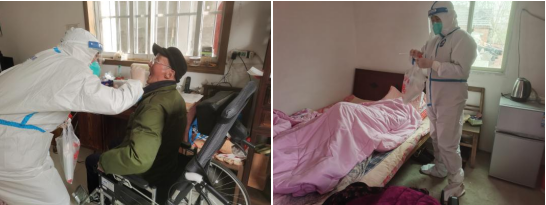 為做到疫情防控全覆蓋,考慮到殘疾人士參加核酸檢測的不便,橫溪街道要求對轄區(qū)每一位殘疾居民提供上門核酸檢測服務(wù)。駐點(diǎn)紅旗村的醫(yī)護(hù)人員在志愿者的帶領(lǐng)下來到殘疾村民家中,為行動不便的村民做核酸檢測,醫(yī)護(hù)人員和志愿者在做完檢測之后還仔細(xì)叮囑村民,告訴他們注意安全防護(hù)、勤洗手、保持室內(nèi)通風(fēng)換氣,這一聲聲的問候與關(guān)懷溫暖著每一個(gè)人。
