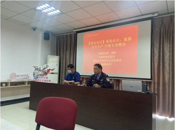 5月11日下午,南京市棲霞區(qū)馬群街道果場社區(qū)新時代文明實踐站邀請到馬群派出所所長,于社區(qū)三樓活動室給社區(qū)居民、黨員開展了一場主題為“抓緊安全生產(chǎn) 開展專項整治”的理論宣講。