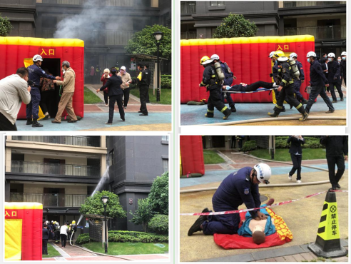 應(yīng)急救援組立即啟動(dòng)應(yīng)急預(yù)案,抓緊趕到火災(zāi)現(xiàn)場(chǎng);由于火勢(shì)較大,搶險(xiǎn)救援組分兩路進(jìn)行救援疏散,并利用消防云梯車深入高層救援將一名受傷人員救出;事故搜救組進(jìn)入事故現(xiàn)場(chǎng)進(jìn)行搜救,現(xiàn)場(chǎng)滅火人員開始撤離;警戒疏散組封閉圍擋火災(zāi)現(xiàn)場(chǎng)及救護(hù)區(qū)域,并懸掛警示標(biāo)牌,引導(dǎo)居民有秩序地向安全區(qū)轉(zhuǎn)移,在前面疏散的負(fù)責(zé)人一邊小跑,一邊不停地提醒居民們要注意安全和疏散秩序。在大家有條不紊,互相配合下,火情得到有效控制,作業(yè)人員及樓棟居民快速疏散至安全場(chǎng)所,總指揮宣布演練結(jié)束。