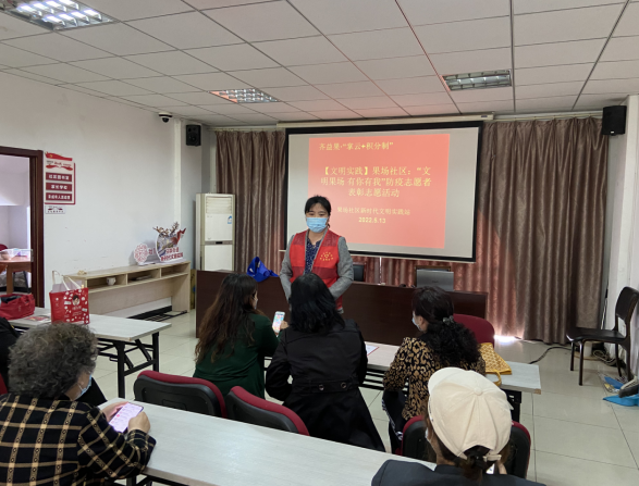 5月13日,南京市棲霞區(qū)馬群街道果場(chǎng)社區(qū)依托社區(qū)新時(shí)代文明實(shí)踐站,在社區(qū)三樓活動(dòng)室,組織社區(qū)“齊益果·掌云+積分制”的防疫志愿者們開(kāi)展了一場(chǎng)主題為“文明果場(chǎng) 有你有我”的表彰會(huì)活動(dòng)。