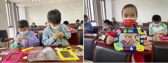 活動(dòng)最后,志愿者老師帶著孩子手工制作相框,孩子們和家長一起動(dòng)手,不一會(huì)兒漂亮的相框就制作完成,家長與孩子們一同并把帶來的全家福裝進(jìn)相框,孩子們高興地拿著自己的作品相互分享欣賞。