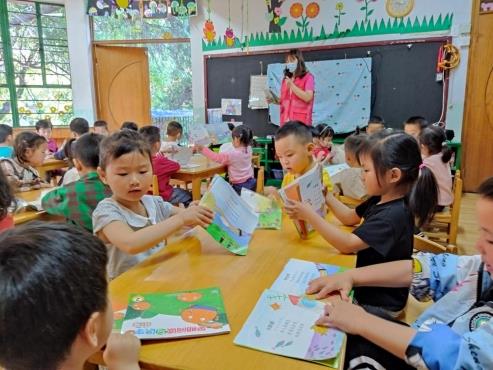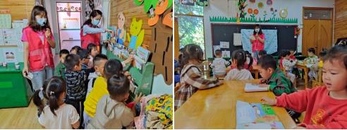 幼兒園教室里設(shè)有圖書角,志愿者精心挑選了一些精彩、經(jīng)典的繪本故事放在其中供孩子們自行挑選。簡(jiǎn)單的文字、生動(dòng)的插圖、動(dòng)人的情節(jié),無一不吸引著孩子們的注意力,大家迫不及待地讀起繪本,打開一扇觀察世界的大門?,F(xiàn)場(chǎng),便民服務(wù)中心志愿者還向孩子們介紹繪本故事,并邀請(qǐng)孩子講述自己喜歡的選段,分享喜歡的理由和讀后的感想,在分享互動(dòng)中充分鍛煉他們的閱讀、理解、表達(dá)能力。