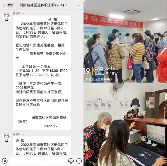 為了進一步完善社會保障體系,切實加強退休人員社會化管理服務(wù)工作,保障轄區(qū)退休人員的身體健康,提升居民對自身健康的認知,南京市棲霞區(qū)馬群街道潤康苑社區(qū)便民服務(wù)中心于5月18日開展2022年度退休人員免費健康體檢。