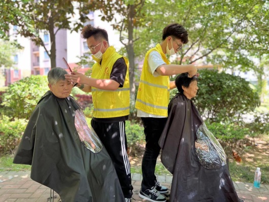 一大早,在小區(qū)廣場內時間銀行志愿者們就已經(jīng)準備好了各項器材、設備。志愿者分成兩只小隊,一隊為老人們挑選涼爽的樹蔭下,開展免費理發(fā)服務活動,前來理發(fā)的老人絡繹不絕,老人們對志愿者服務質量也是贊不絕口,臉上洋溢著幸福笑容。一隊則是為老人們測量血壓、血糖、心率等,解答相關的健康咨詢問題,并且給予老人們生活上的建議,引導他們養(yǎng)成健康的生活習慣。