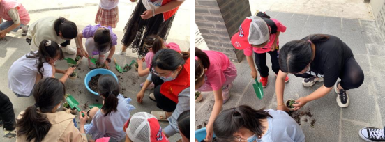 DIY多肉植物也受到了大家的喜愛,親子們揮舞起鏟子,在小花盆里種上可愛的多肉,填埋上泥土,澆灌合適的水,期待它們的成長。