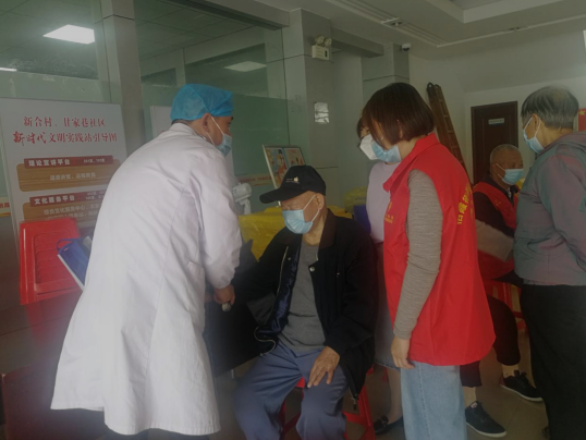 當(dāng)天一早,新合村黨群服務(wù)中心中坐滿了許多前來咨詢的殘疾人,這些老人由于身體原因沒有接種疫苗,且許多人患有高血壓、糖尿病等基礎(chǔ)疾病自身有些顧慮??紤]到殘疾老人行動(dòng)不便,新合村安排專車接至接種現(xiàn)場。棲霞衛(wèi)生中心的陶主任為這些老人量血壓、聽心診,仔細(xì)回答老人們的問題,詢問他們的吃藥種類、注意事項(xiàng)等,叮囑老人平時(shí)多注意飲食和鍛煉,讓大家在疫情期放松心態(tài),做好保護(hù),接種疫苗保護(hù)自己。