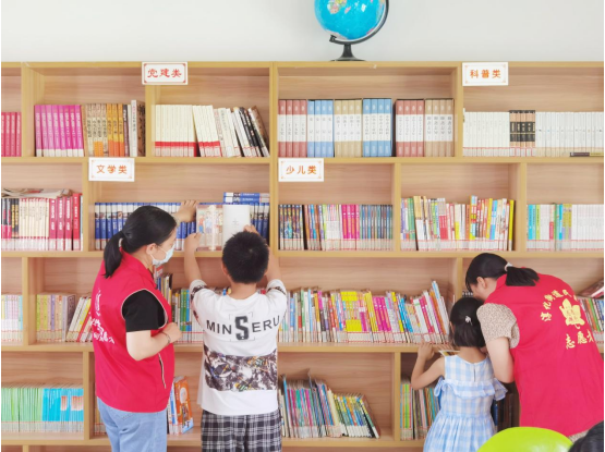 每天,志愿者們都會輪流來到青少年閱覽室陪同管理,為青少年兒童提供良好的學(xué)習(xí)環(huán)境。青少年閱覽室的書籍按照黨史、科普、文學(xué)、歷史等分類整齊擺放,有的孩子不清楚自己想閱讀的書籍類型,志愿者也會仔細詢問他們的需求,幫他們查找、拿取,給他們推薦合適的書籍,和他們一起閱讀、交流、分享,吸取書中的知識,感悟書中的道理。有的孩子在閱覽室中完成暑假作業(yè),志愿者會在旁輔導(dǎo),幫他們解決疑難問題,有的孩子會上網(wǎng)查找資料、觀看紀錄片等,在互聯(lián)網(wǎng)廣闊的知識海洋里遨游。