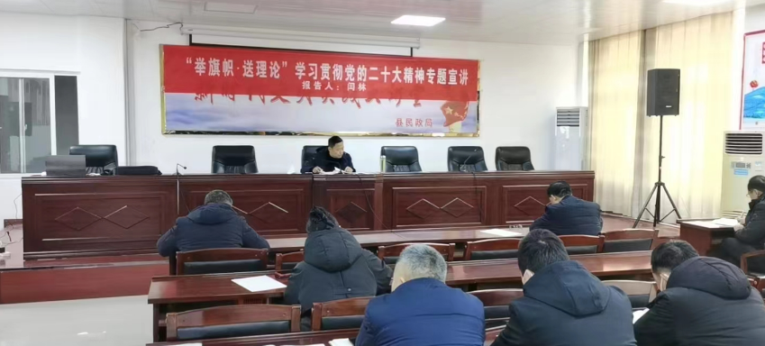 為深入學(xué)習(xí)貫徹黨的二十大精神,加強黨員教育管理,發(fā)揮黨支部“戰(zhàn)斗堡壘”作用,新年伊始,利辛縣民政局認(rèn)真開展“主題黨日活動”。活動在“一月一課一片一實踐”重要內(nèi)容上增加了局黨組書記、黨總支書記閆林同志所做的“學(xué)習(xí)貫徹黨的二十大精神”專題宣講,同時強化“兩節(jié)”期間的黨風(fēng)廉政教育和節(jié)日期間要關(guān)心關(guān)愛困難群體等重要關(guān)鍵性要求。